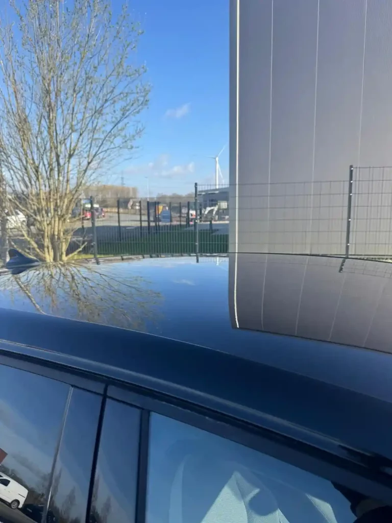 Zusätzlich waren Motorhaube und Dach stark mit eingebranntem Saharastaub belastet. Dieser Staub kann in Kombination mit Sonne und Feuchtigkeit ebenfalls deutliche Spuren im Lack hinterlassen.