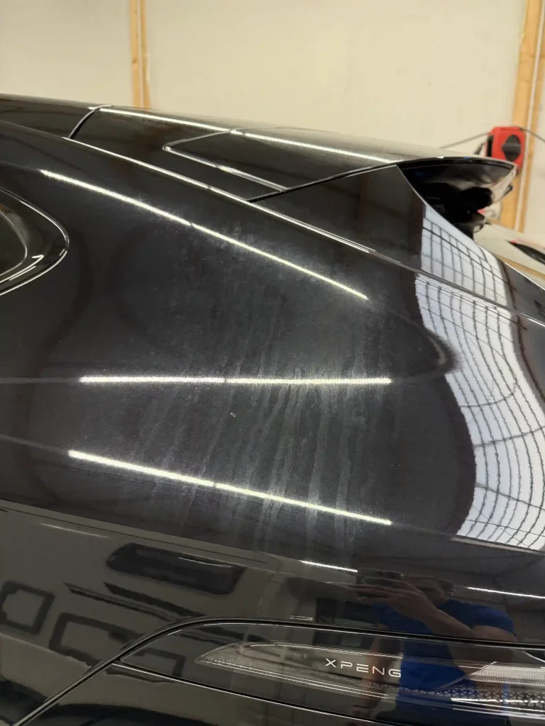 Gerade bei schwarzem Lack sieht man sofort, ob sauber gearbeitet wurde oder nicht. Nach mehreren Polierdurchgängen sah der Xpeng-Lack endlich wieder so aus, wie man es von einem Neuwagen erwartet.